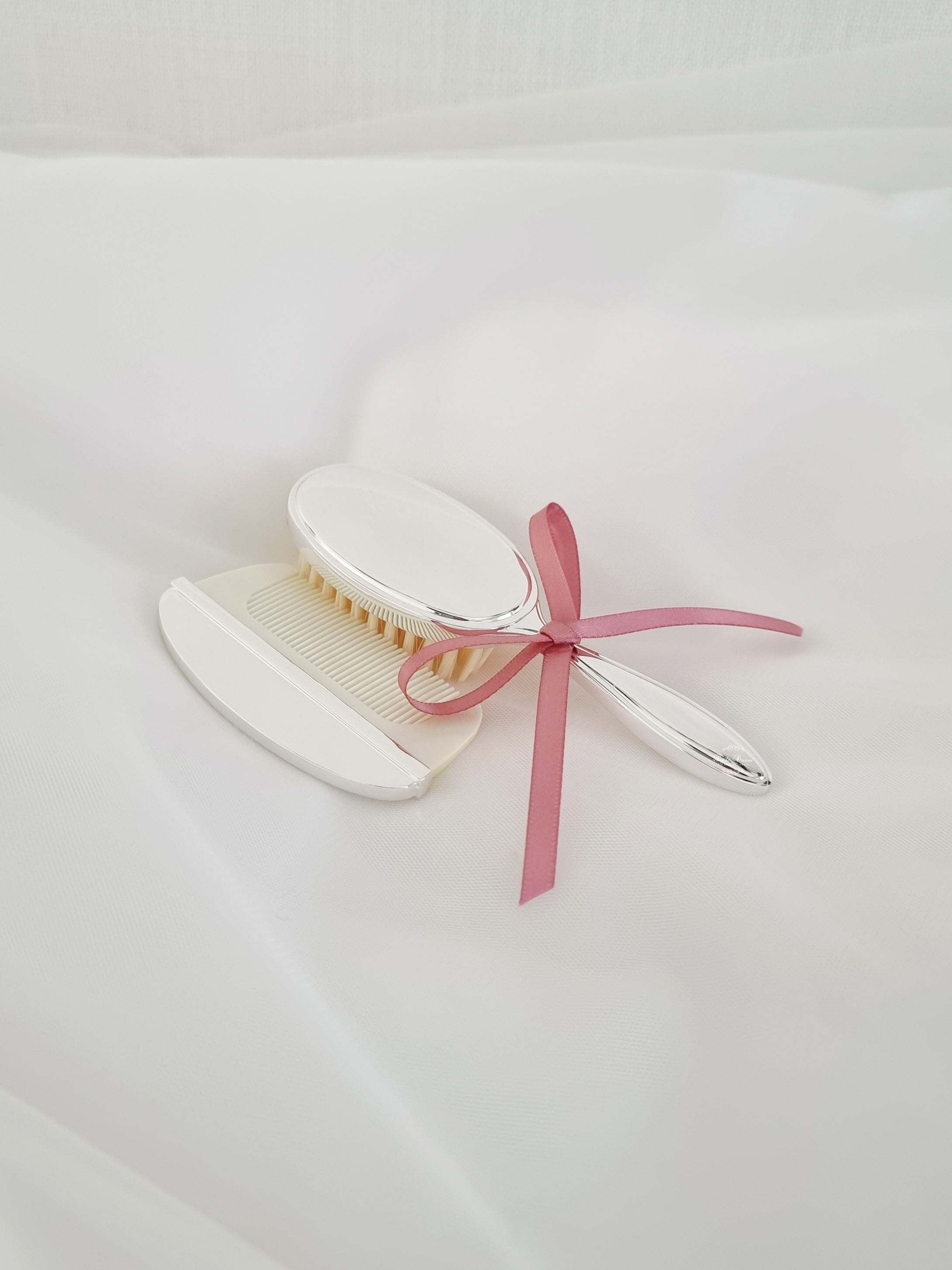 LDHBC29S - Plain Silver Baby Hair Brush and Comb Set