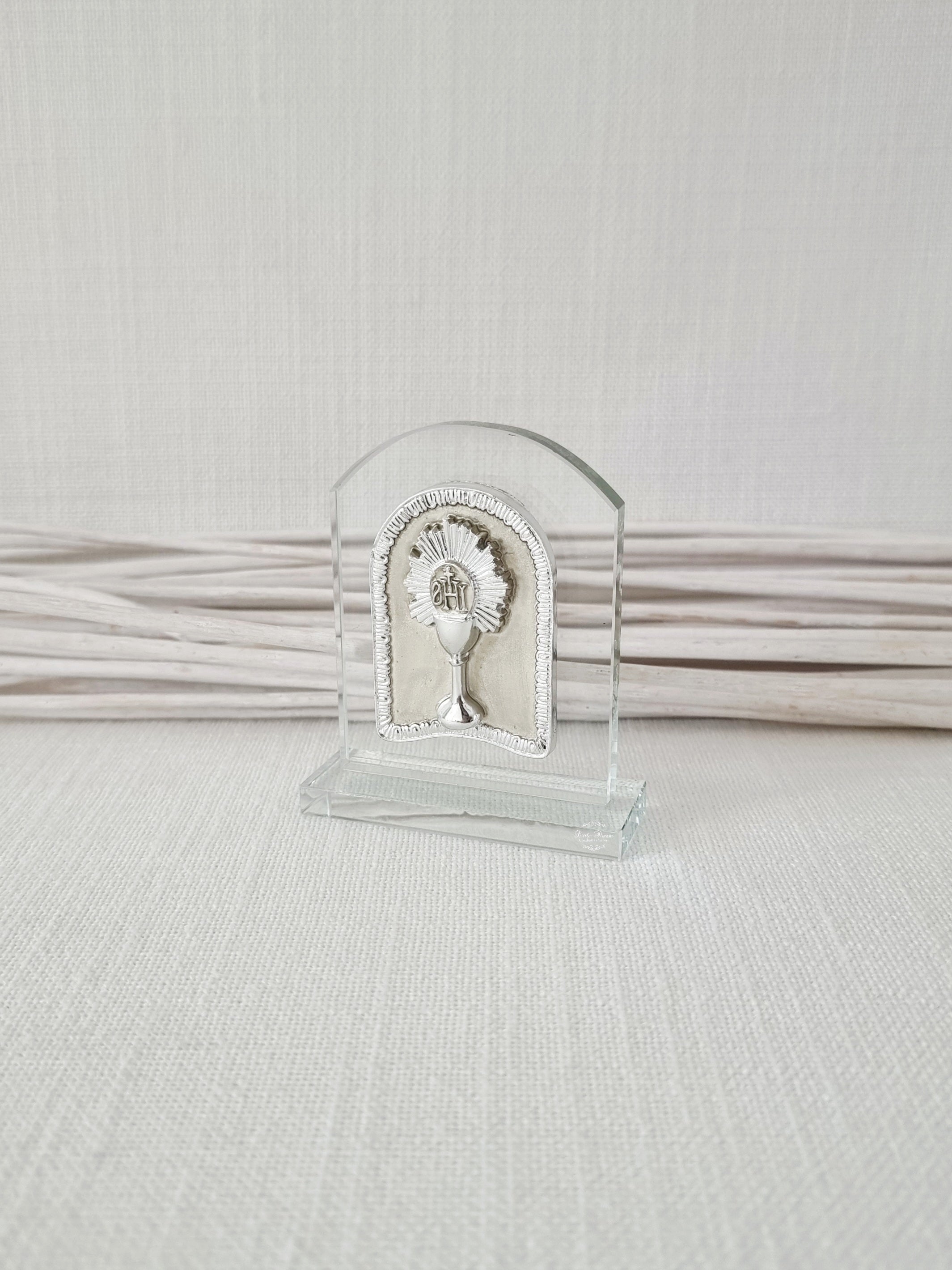 First Holy Communion Raised Chalice on Freestanding Glass Plaque